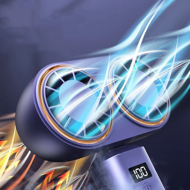 USB Rechargeable Handheld Mini Fan – Foldable, Portable, Neck-Hanging with Display & 5 Speeds